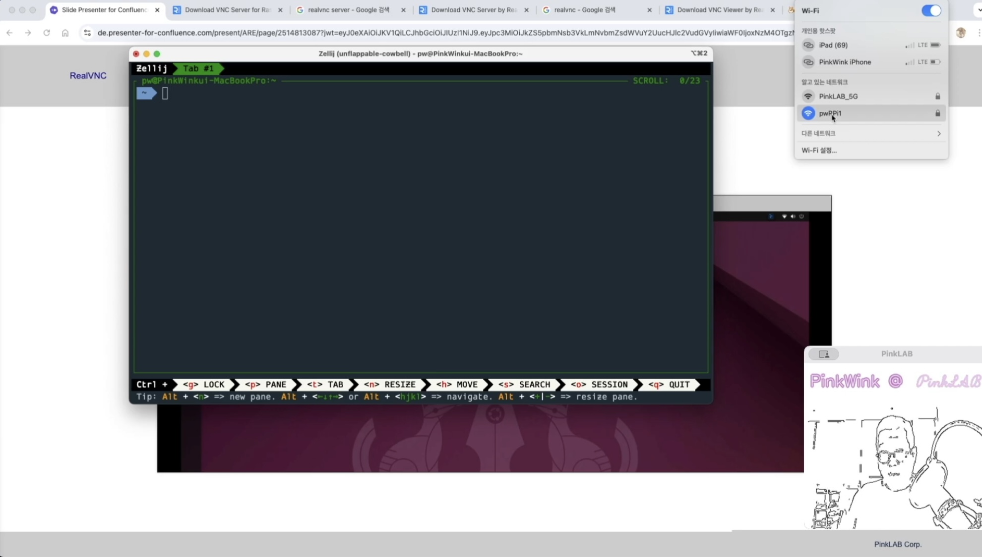 강사님 맥에서 실행한 터미널, 그리고 강사님은 여기 또 다시 뵈실까요? 여기 wifi 보면 pwRPi1 있어요,