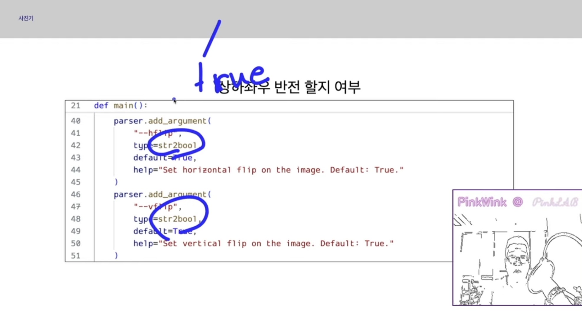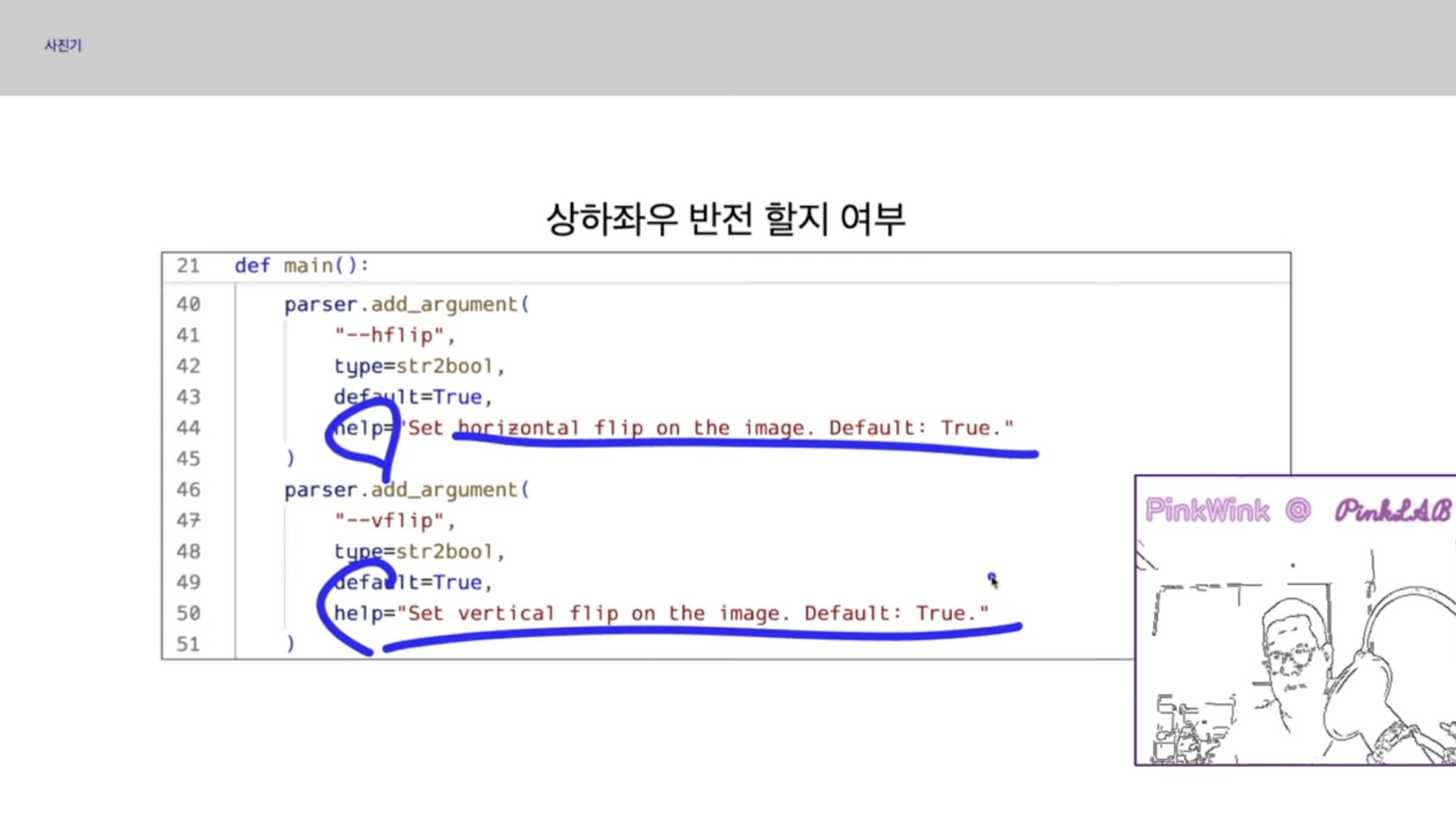 hfilp, vfilp은 default가 true예요. 그러니까, 지난시간 영상에서 쭉 따라오셨다면,