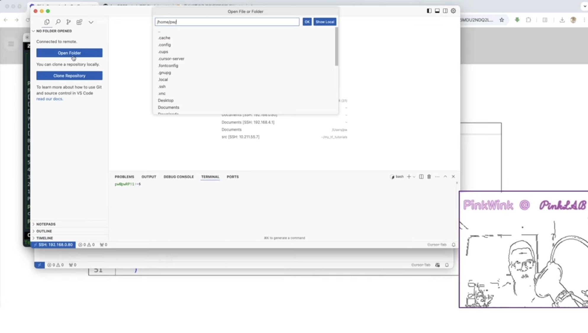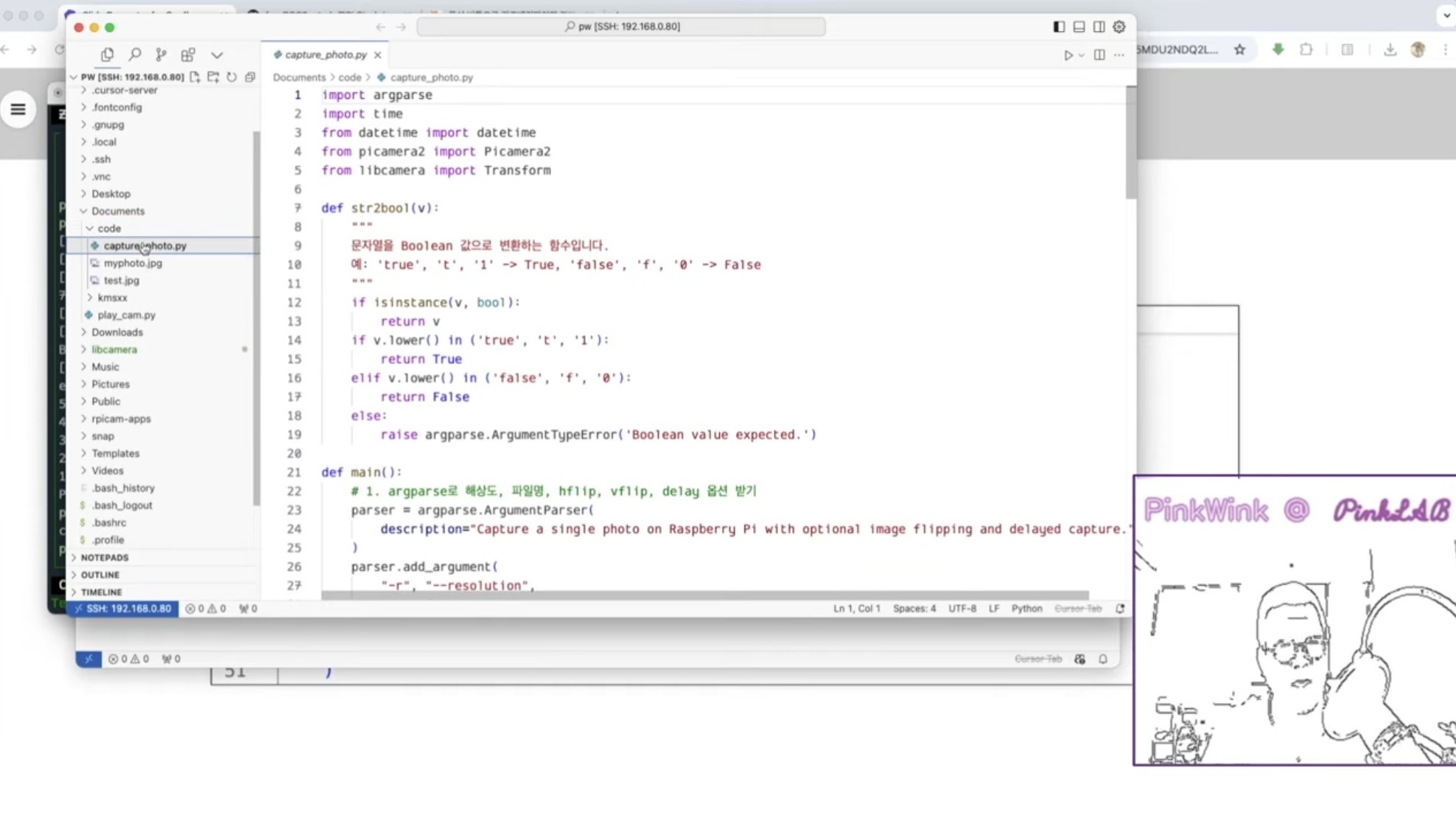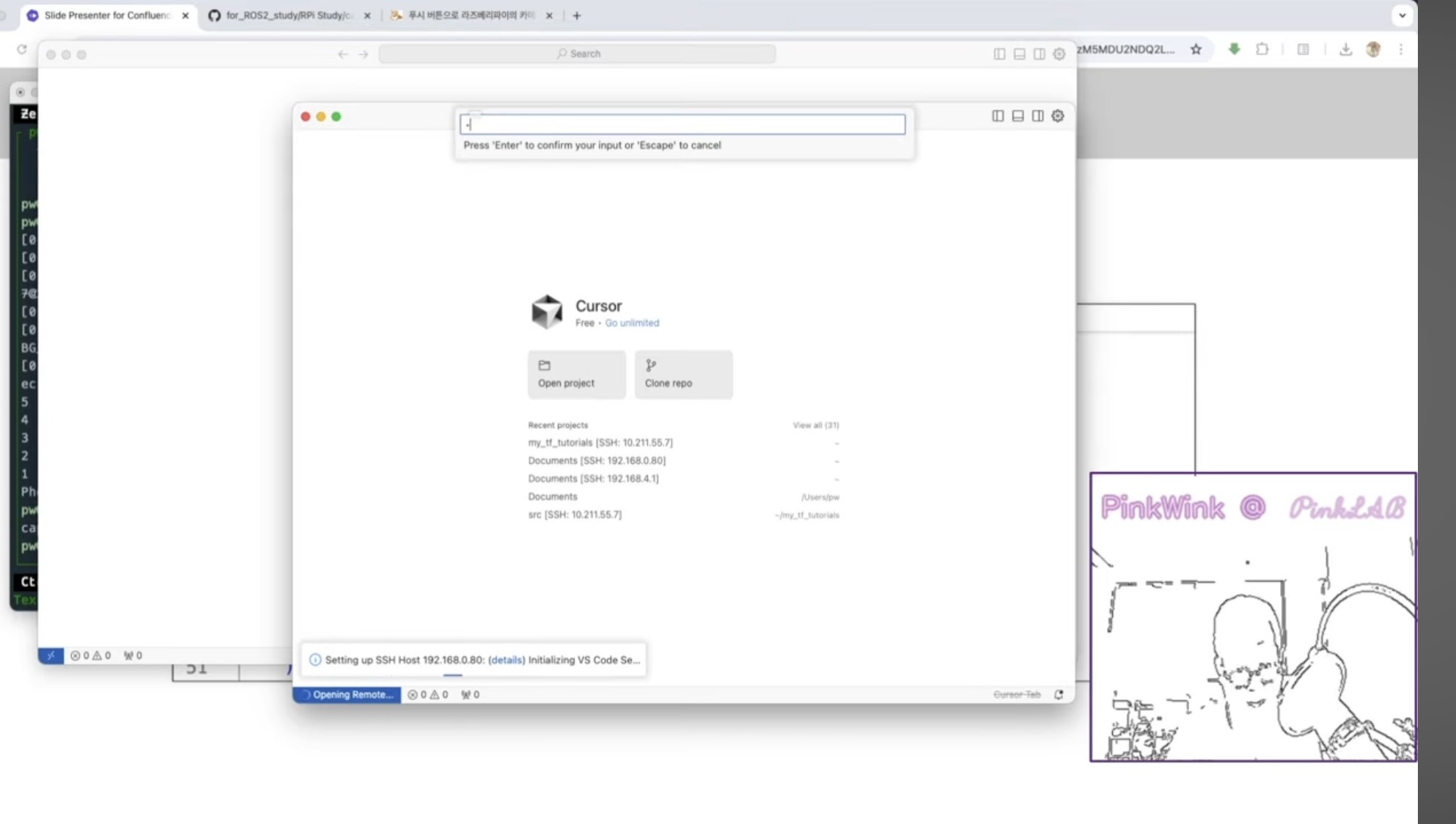 rasberrypi를 vscode이건, cursor이건 간에 ssh extension으로 들어 간 상태예요.