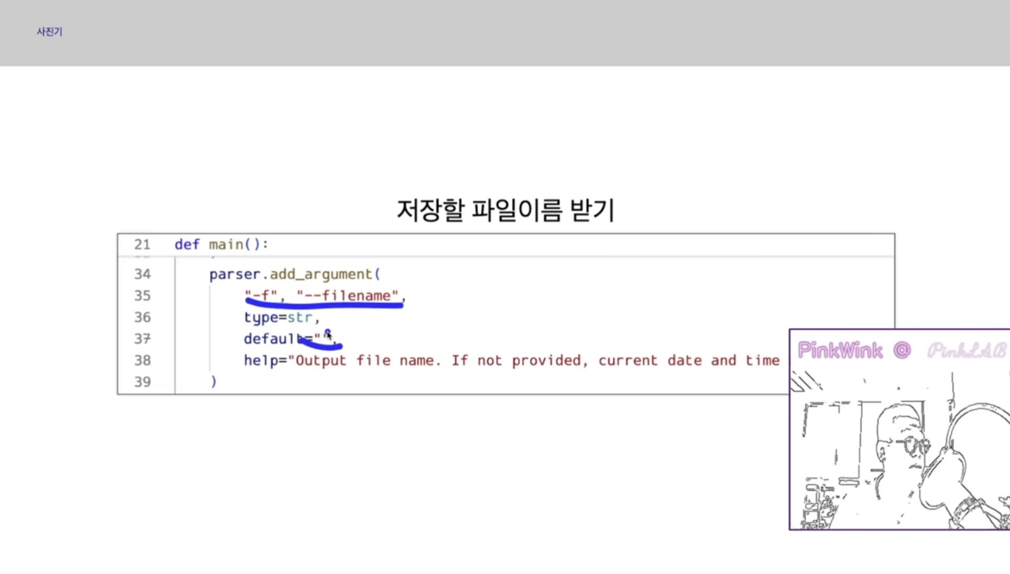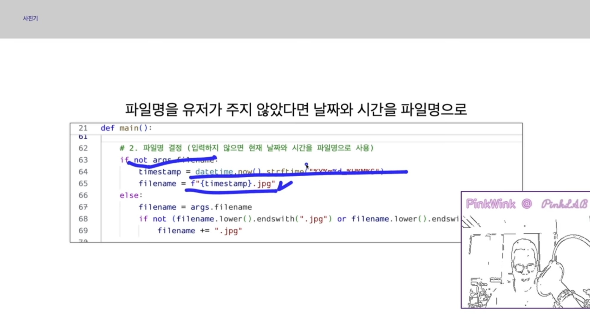 유저가 파이썬3 하고 파일 이름 적고 입력을 주는 것에 대한 대응이예요. 실제로 사진 저장하는 건 이게 전부예요.