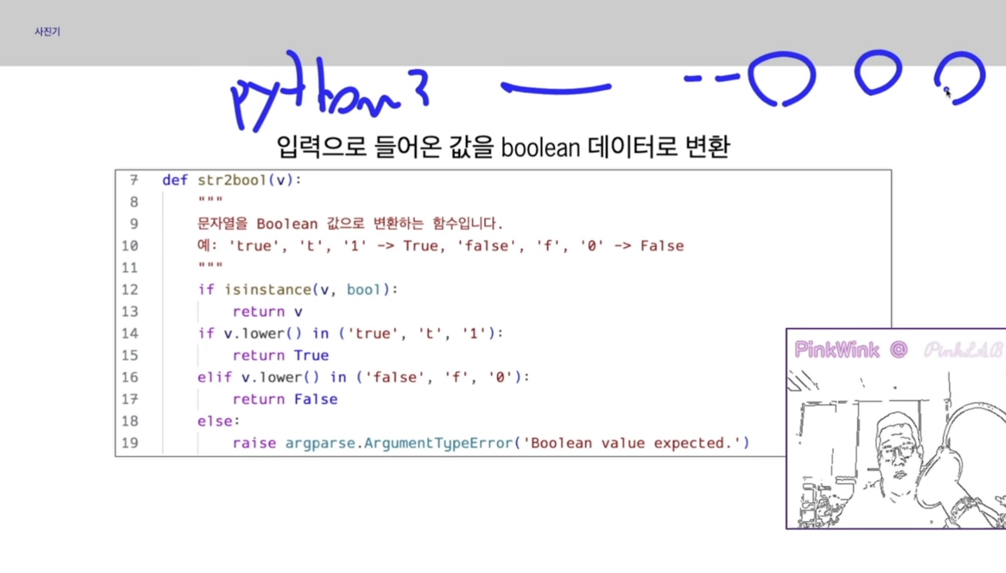 그런데 유저가 Python3 하고 입력을 줄 때, 트루로 주거나 문자로 주거나 하면 참 좋은데,