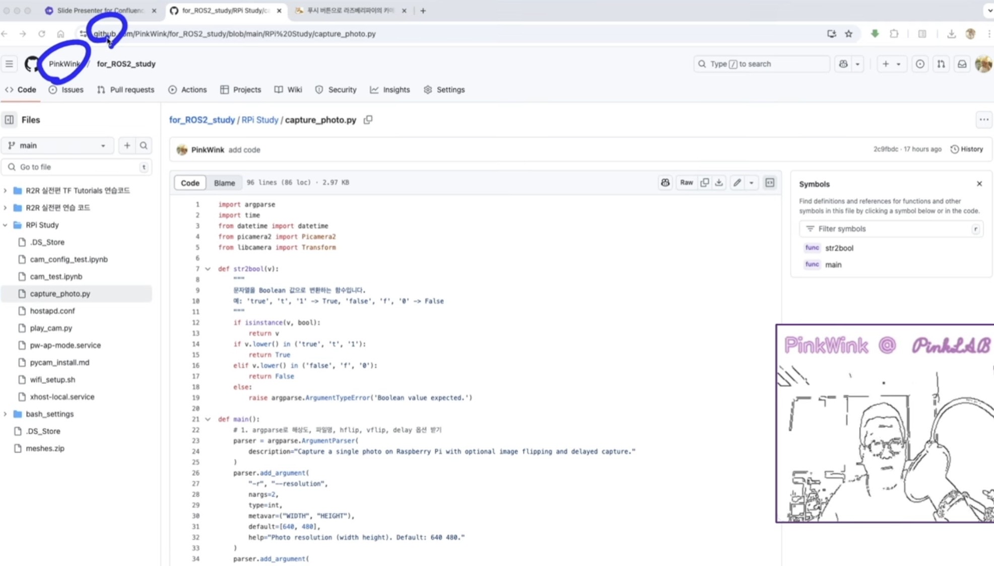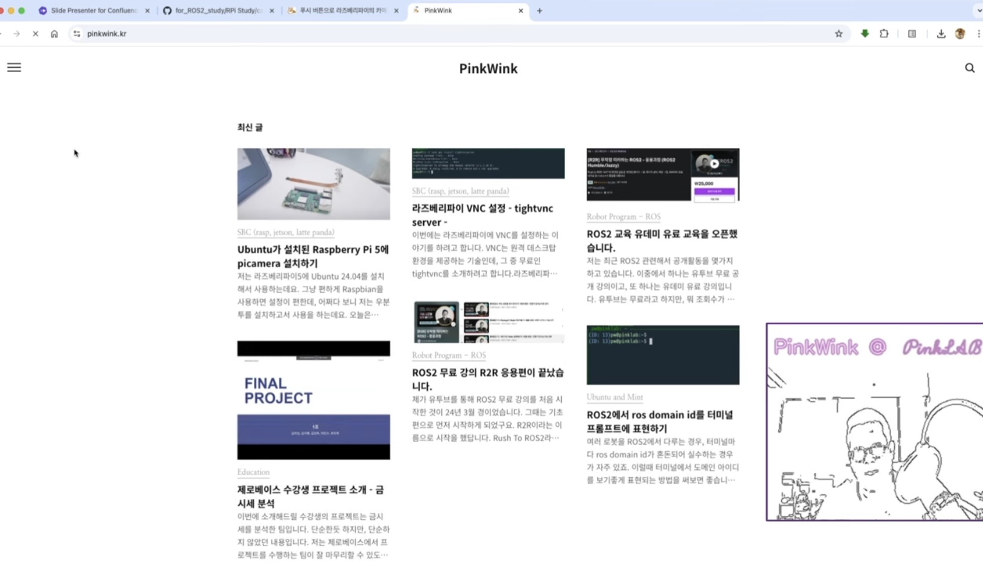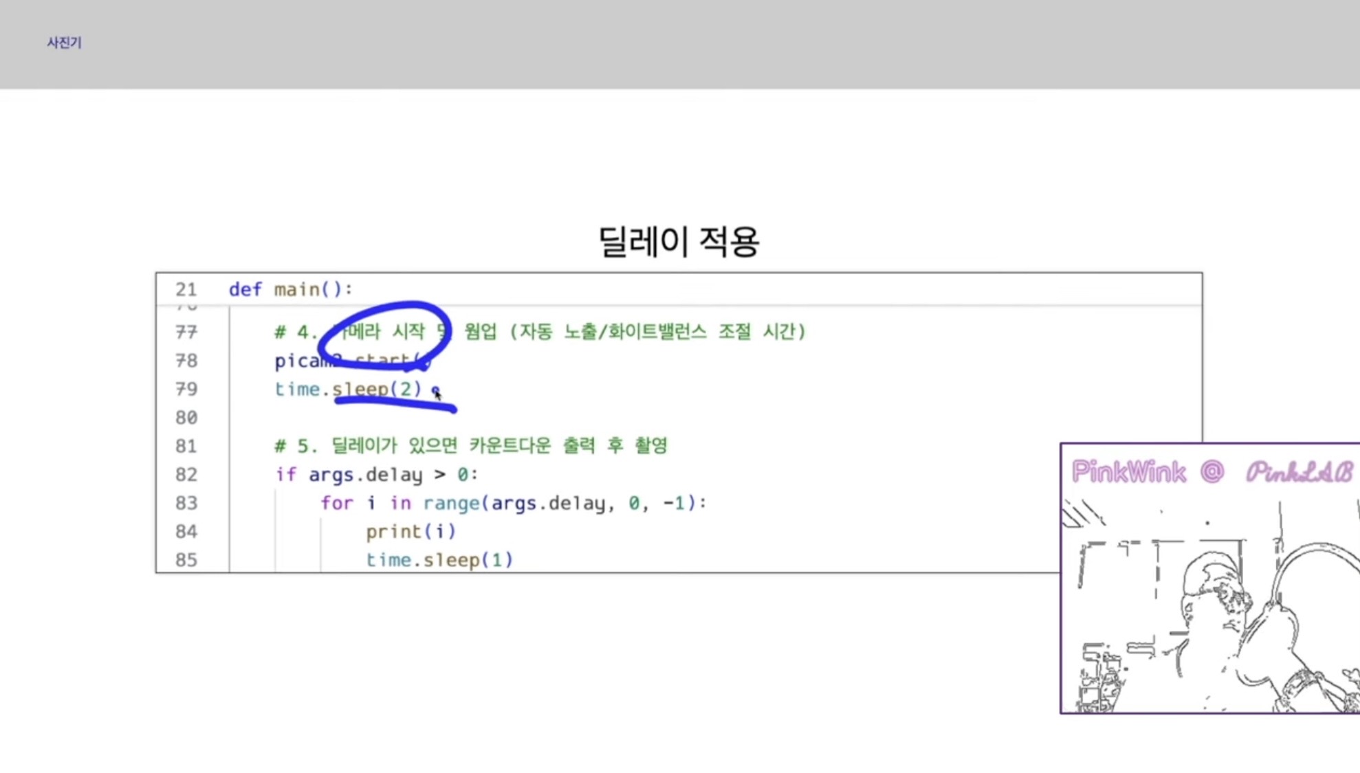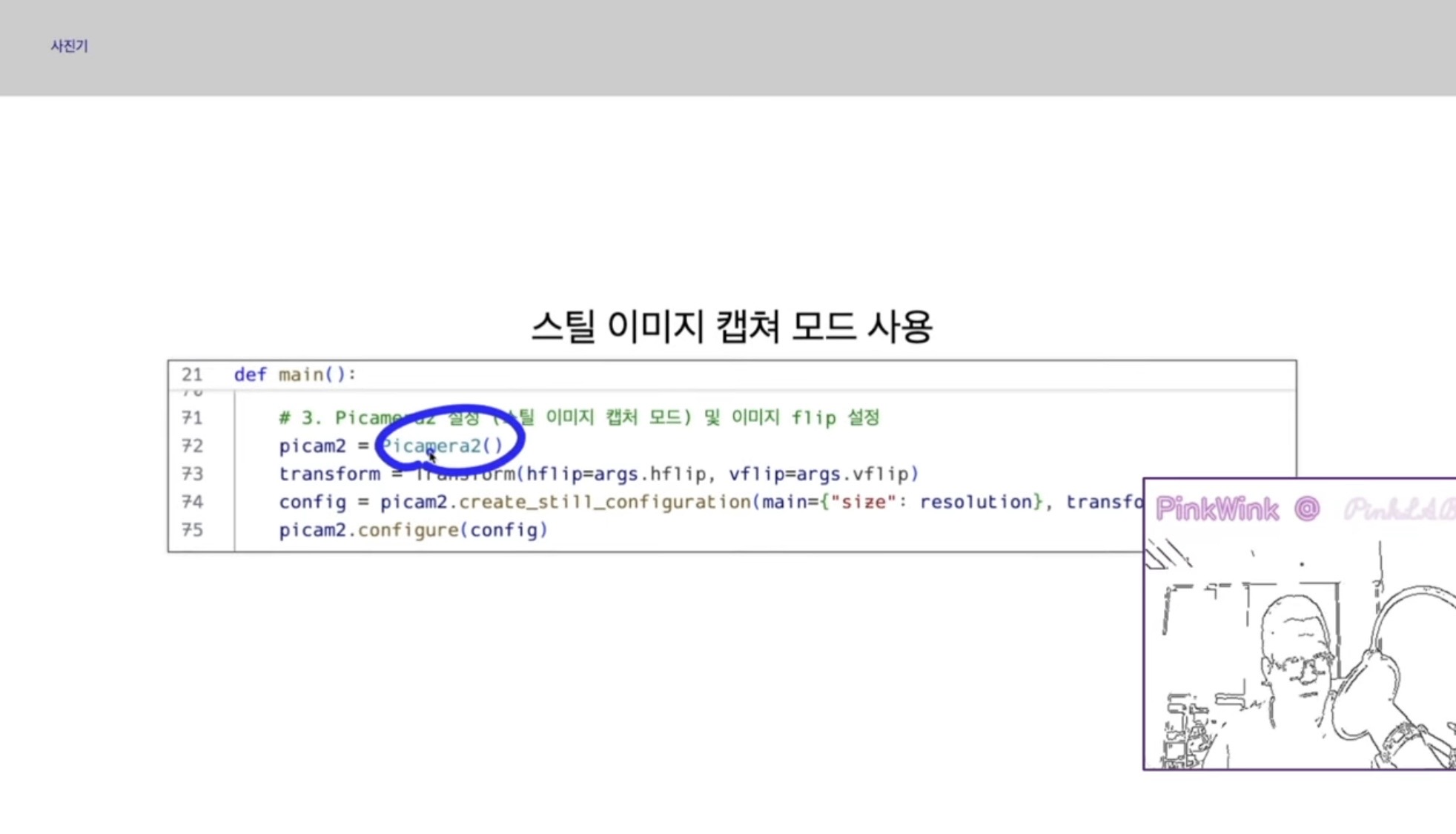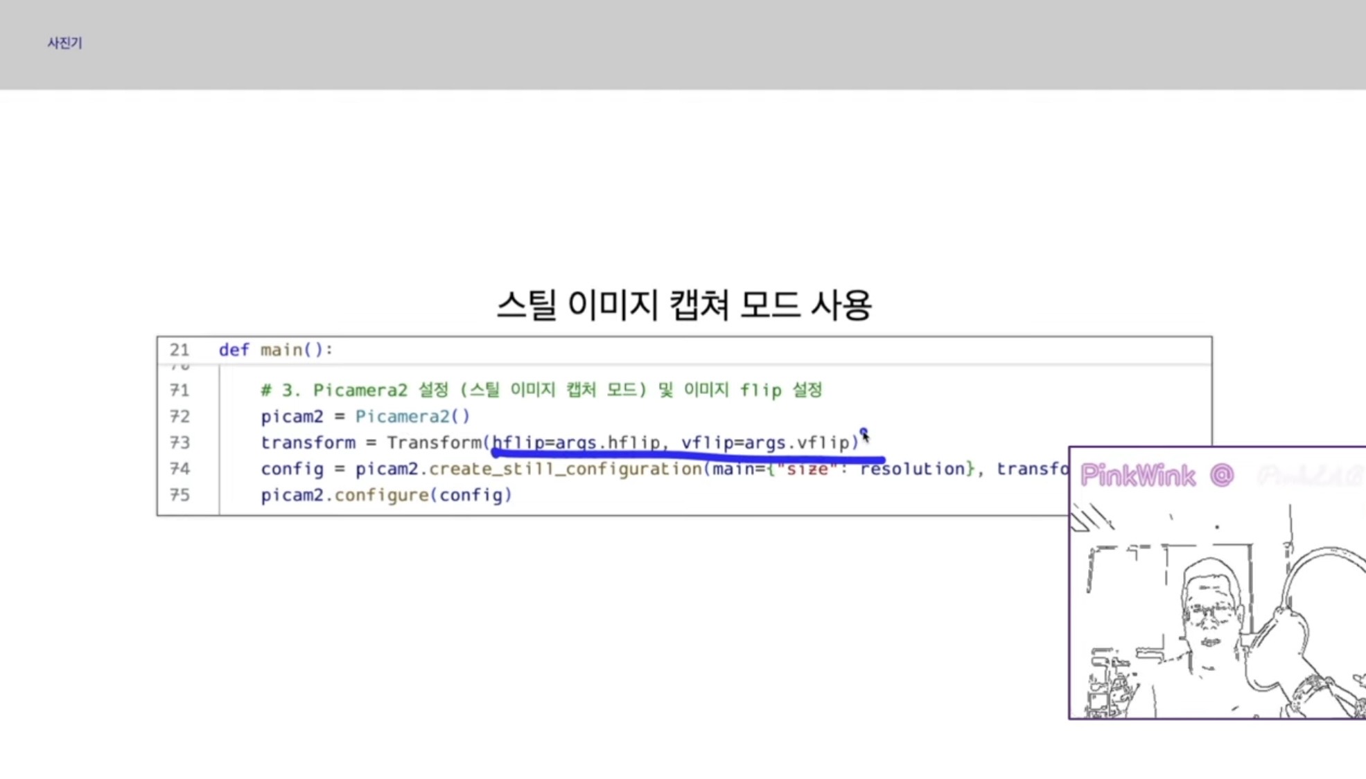 강사님께서는 핑키라는 로봇에 달려있는 카메라를 쓰셨는데요,