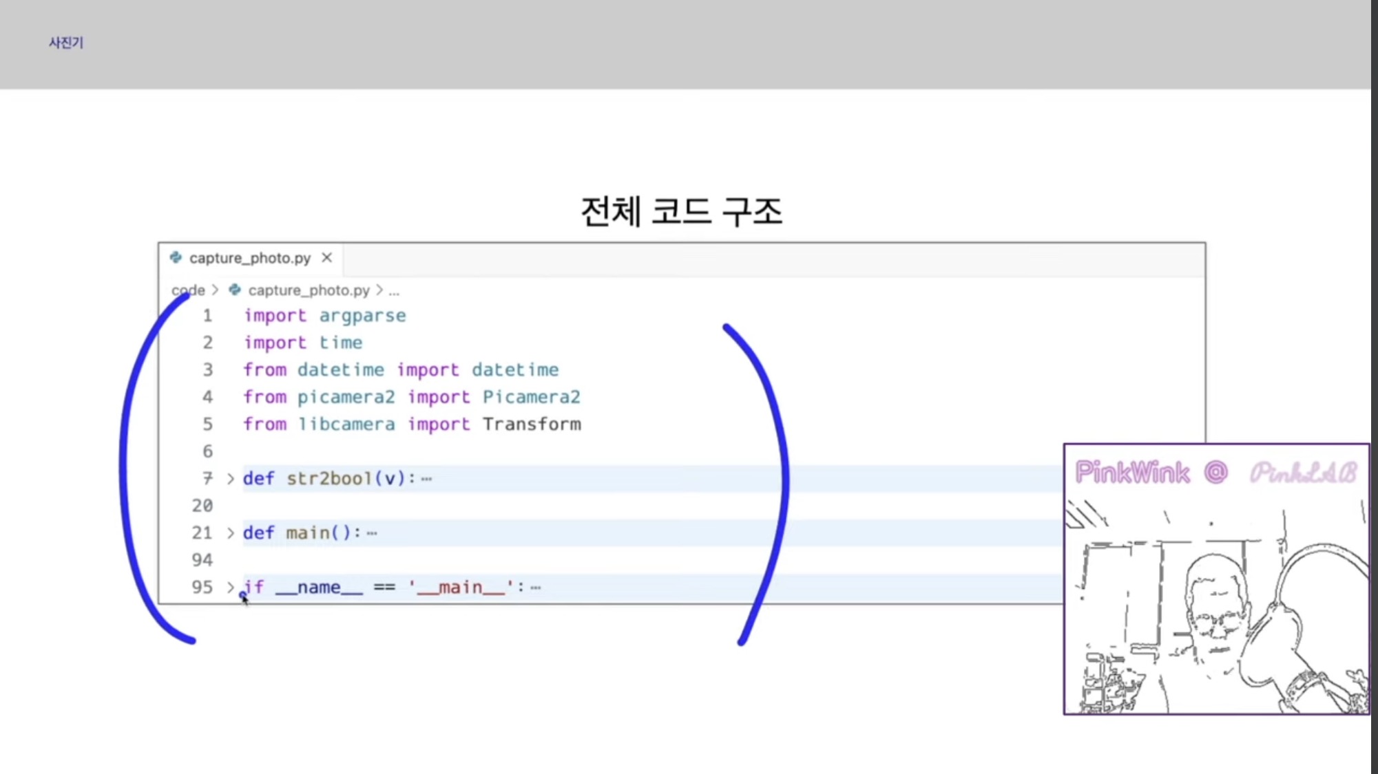 21번째 줄의 def main():- 이건 설명을 해야하는데, 조금 있다가 구조를 보면서 같이 얘기 해 주십니다!
