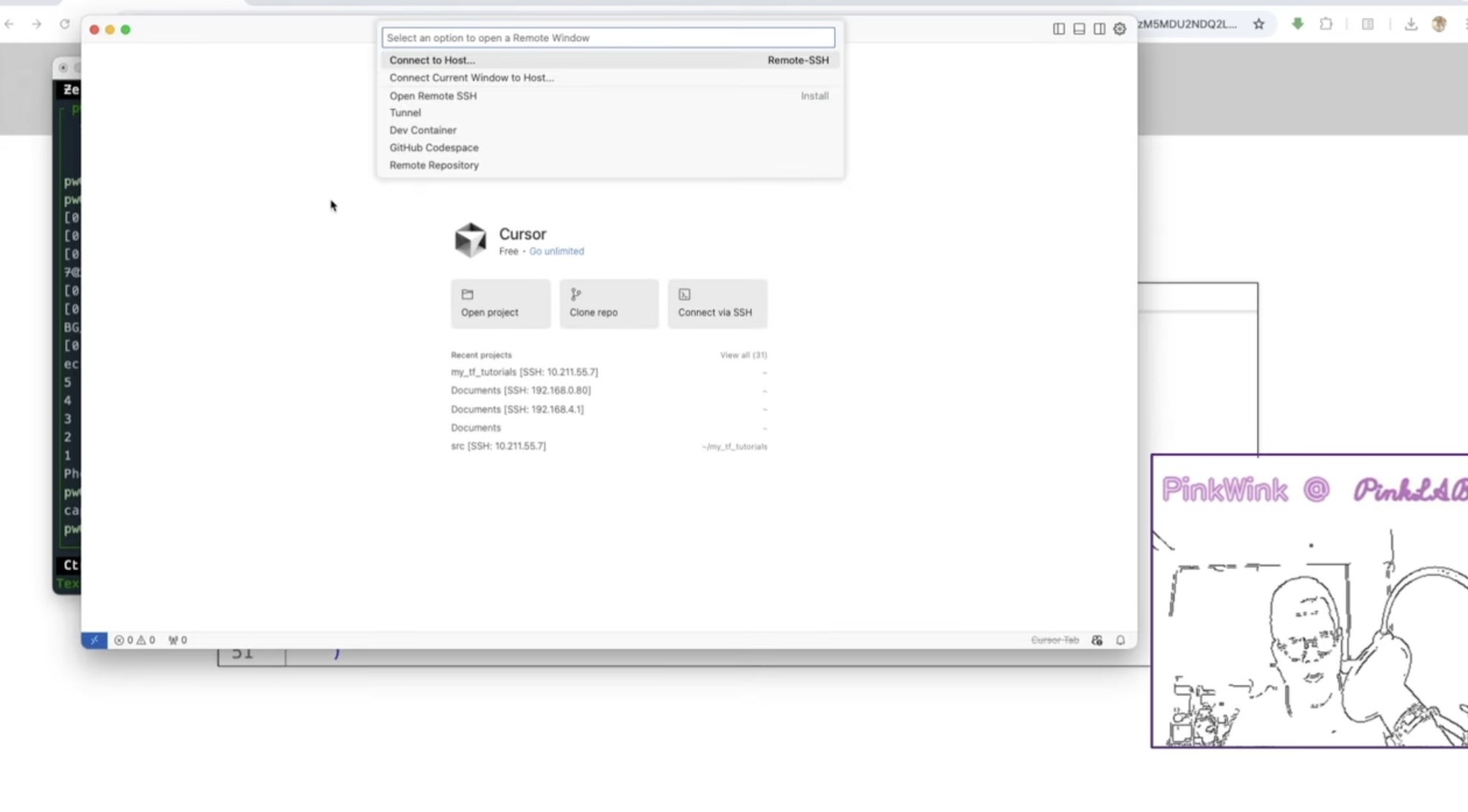 cursor를 이야기 하면, cursor에서 connect host 하고 pw 192.168.0.80으로 들어왔단 말이죠,