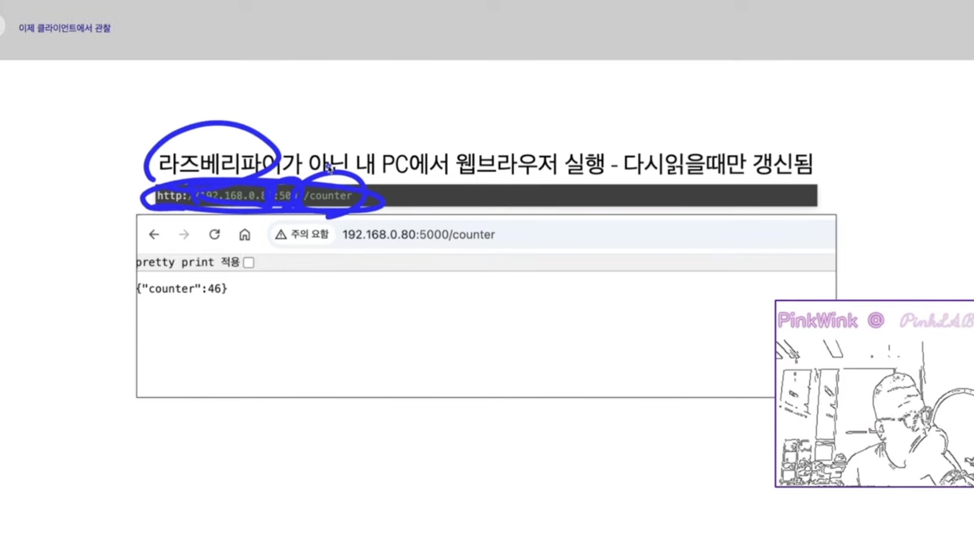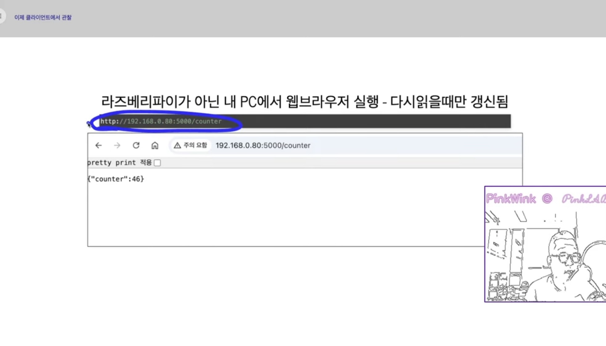 192.168.0.80은 내 라즈베리파이 id, 5000 포트를 열어두었구요, 카운터 경로 열어두면