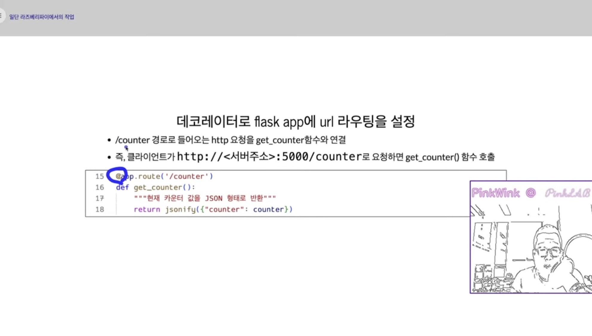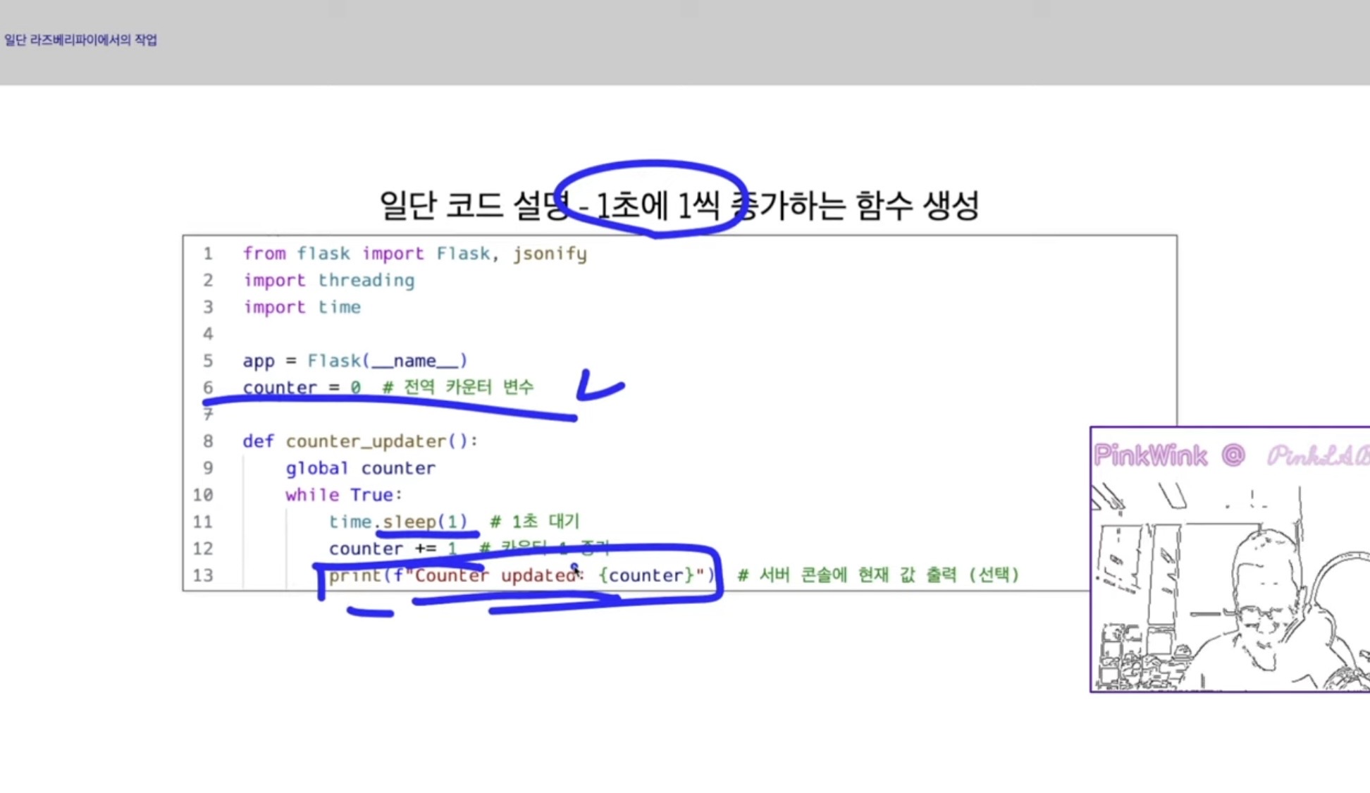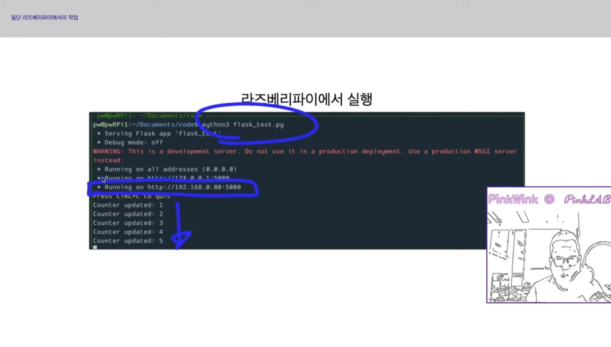 오늘 강의 주제는 '라즈베리파이의 데이터를 외부로 보내는 방법 - flask ' 였어요.