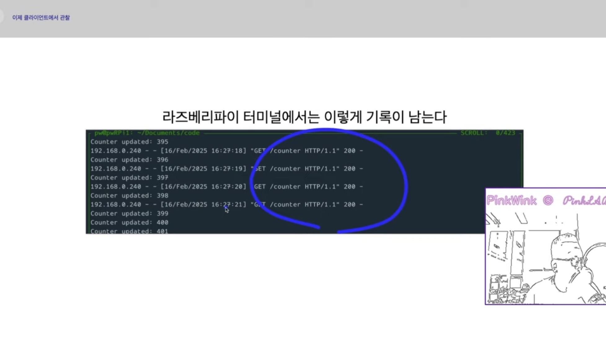 서버쪽 터미널에서는 누가 가져갔다~ 하고 이렇게 떠요.