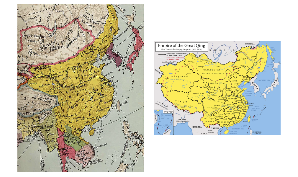 위 두 지도는 명나라(왼쪽)와 청나라(오른쪽)의 전성기대의 지도입니다. 위 지도만 봐도 명과 청의 세력의 크기가 정말 다르다는 것을 알 수 있습니다. 당시 조선에는 오랑캐는 100년을 가지 못한다는 말이 신앙처럼 퍼지고 있었다는데요. 이것은 원나라의 멸망이 100년이었데서 나온 이야기인데, 이를 단순히 민간의 말이 아니라 청건국 100년이 되던 숙종대에서 이제 청나라가 망할 것이니 대책을 세워야한다는 말을 조정에서조차도 했다고 합니다. 그때가 바로 위 지도 오른쪽의 청나라 전성기였을때인데 말이지요. 당시 조선의 지배층은 해도해도 너무하다 싶을 정도로 국제정세에 어두웠다는 증거이기도 하지요.