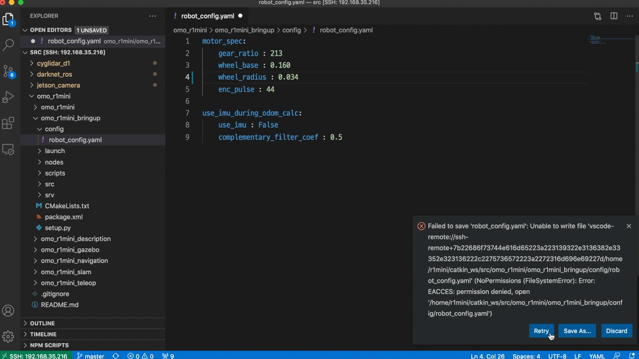 예전에 저는 VSCODE를 이용해서 SSH로 젯슨 나노나 라즈베리파이에 접근하는 방법을 이야기했었는데요. 그렇게 쓰다보면 아주 가끔 권한 문제로 파일을 저장할 수 없다는 에러가 날 수 있습니다. 해당 문장은